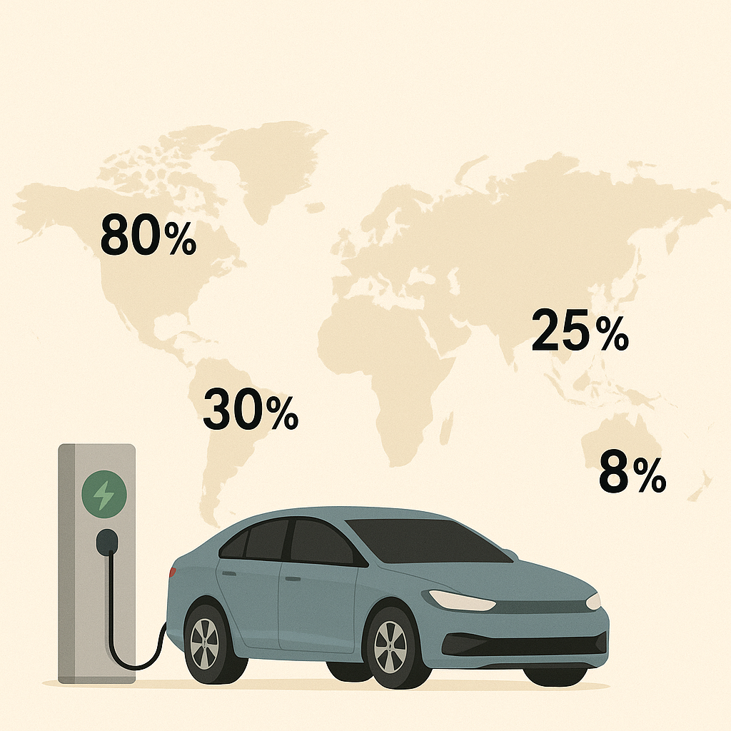 전기차 보급률은 각국의 정책과 인프라 수준, 소비자 수요에 따라 매우 큰 차이를 보이고 있습니다. 가장 눈에 띄는 나라는 노르웨이로, 전체 신규 차량 판매의 약 80%가 전기차일 정도로 세계 최고 수준의 보급률을 기록하고 있습니다. 그 뒤를 독일, 네덜란드, 스웨덴 등의 유럽 국가들이 따르고 있으며, 유럽 전역에서 전기차가 빠르게 대중화되고 있는 추세입니다.
